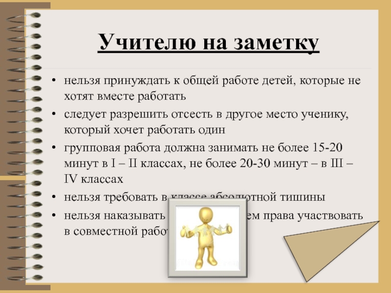 Организация групповой работы требует от учителя особых умений, усилий