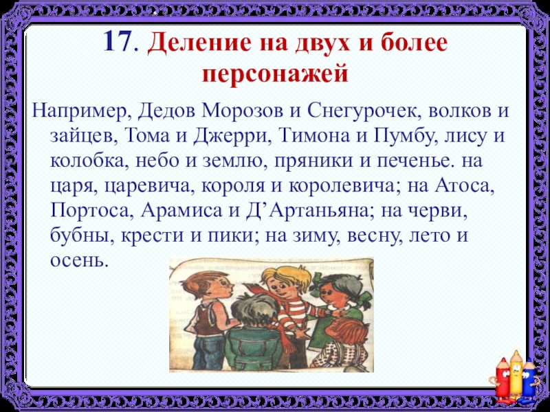 Слайд 3117. Деление на двух и более персонажей