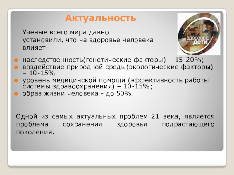 Одной из самых актуальных проблем 21 века, является проблема сохранения здоровья подрастающего поколения.