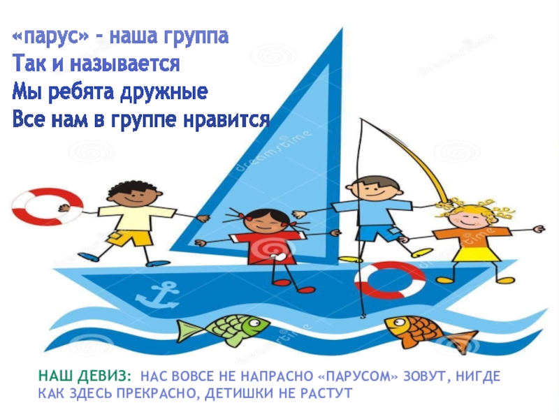 Наш девиз: Нас вовсе не напрасно «парусом» зовут, нигде как здесь прекрасно, детишки не растут