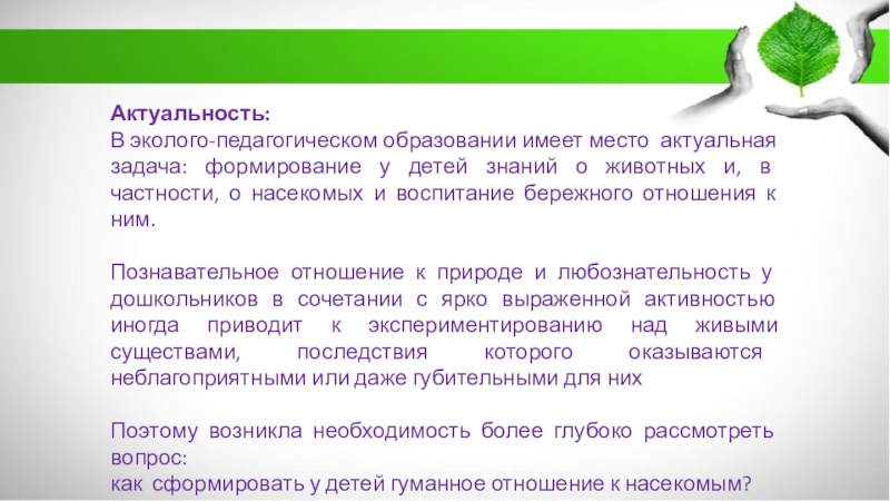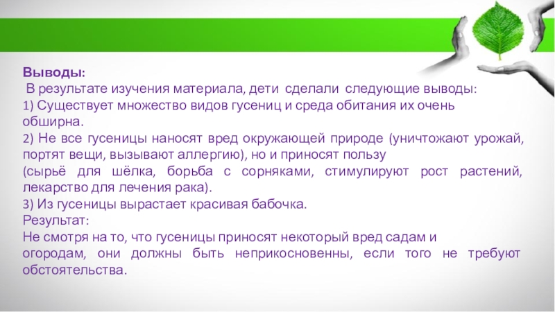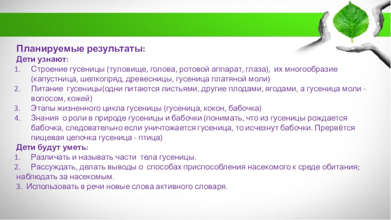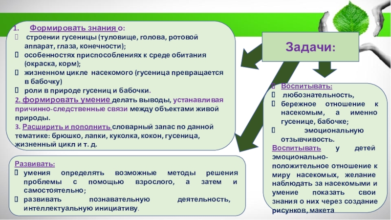 бережное отношение к насекомым, а именно гусенице, бабочке;