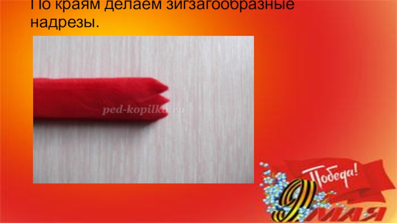 Слайд 6По краям делаем зигзагообразные надрезы.