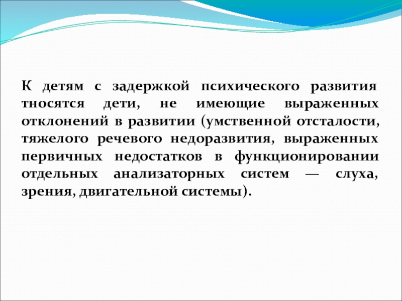 К детям с задержкой психического развития тносятся дети, не имеющие выраженных