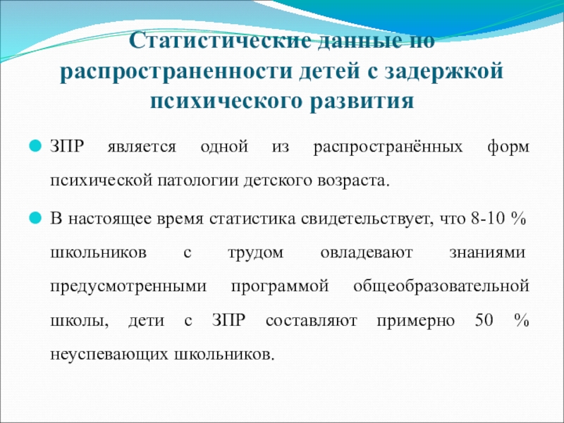 Слайд 30Статистические данные по распространенности детей с задержкой психического развития