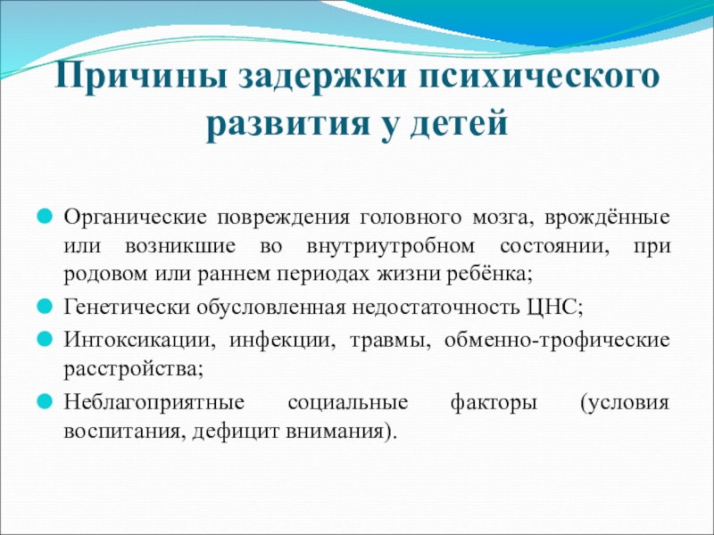 Слайд 10Причины задержки психического развития у детей