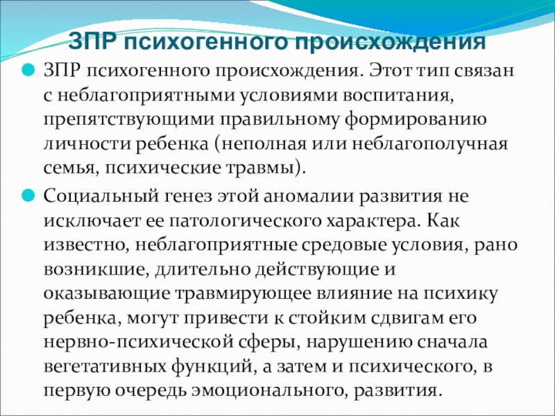 Слайд 16ЗПР психогенного происхождения