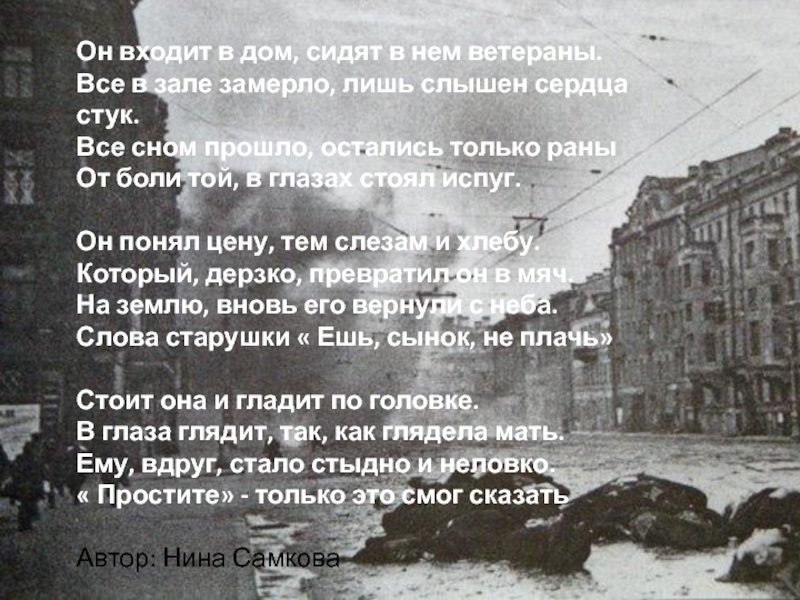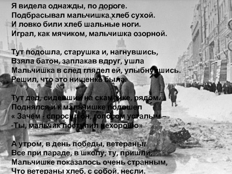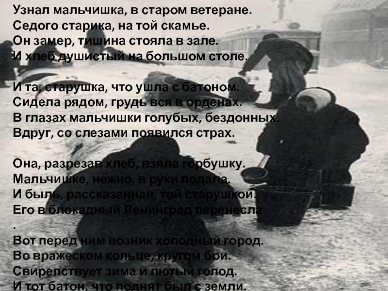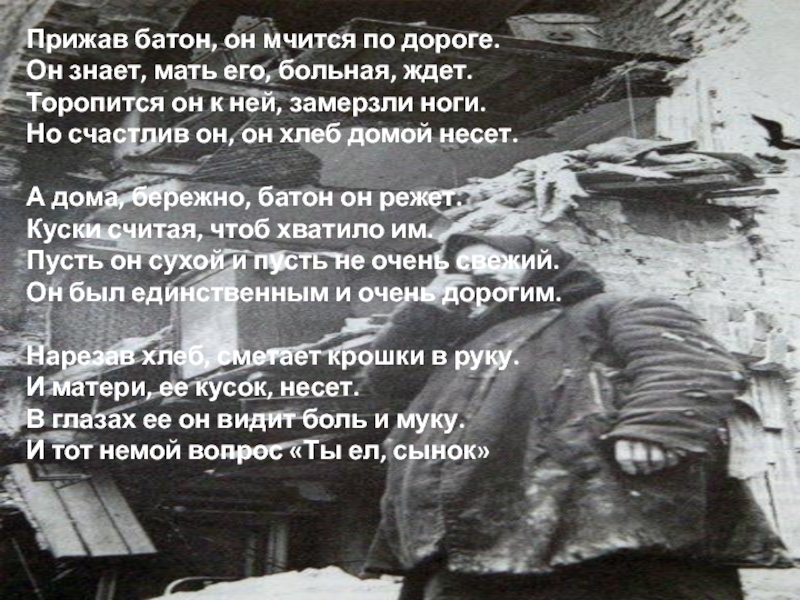 Слова старушки « Ешь, сынок, не плачь»