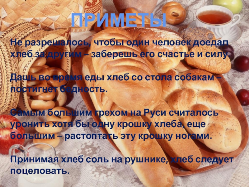 Самым большим грехом на Руси считалось уронить хотя бы одну крошку хлеба, еще большим – растоптать эту крошку ногами.