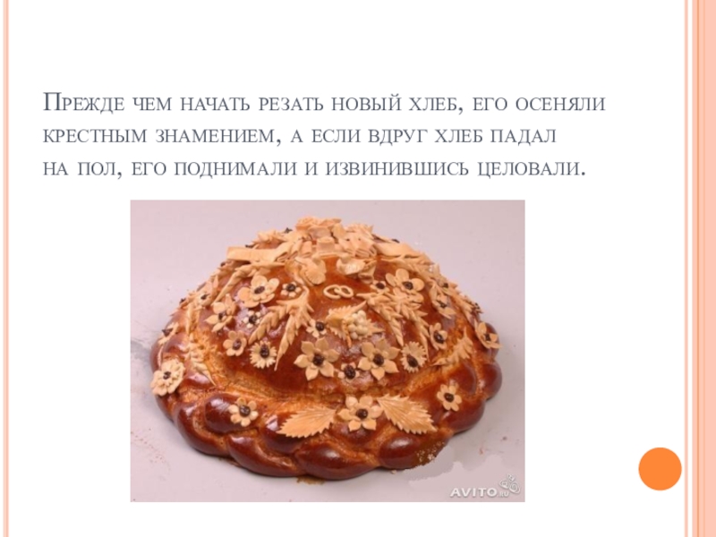 Слайд 5Прежде чем начать резать новый хлеб, его осеняли крестным знамением, а