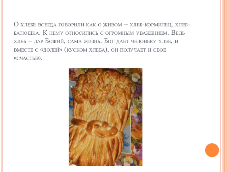 Слайд 7О хлебе всегда говорили как о живом – хлеб-кормилец, хлеб-батюшка. К