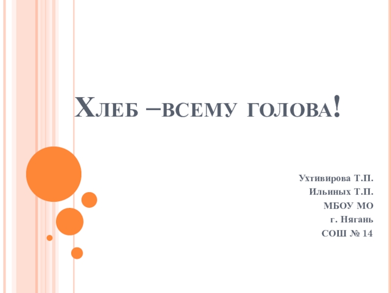 Хлеб –всему голова!Ухтивирова Т.П.Ильиных Т.П.МБОУ МО г. Нягань СОШ № 14