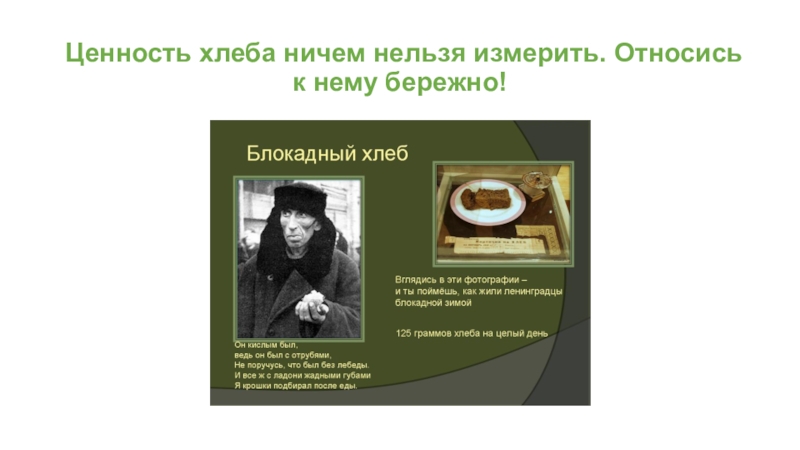 Слайд 3Ценность хлеба ничем нельзя измерить. Относись к нему бережно!