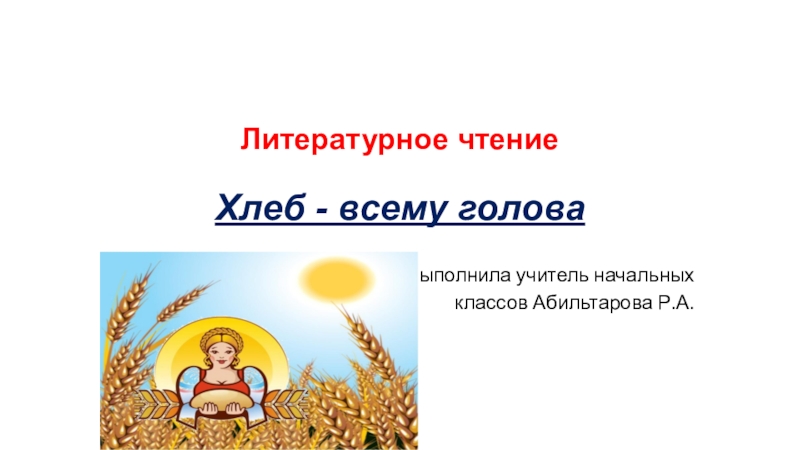 Литературное чтение  Хлеб - всему головаВыполнила учитель начальныхклассов Абильтарова Р.А.
