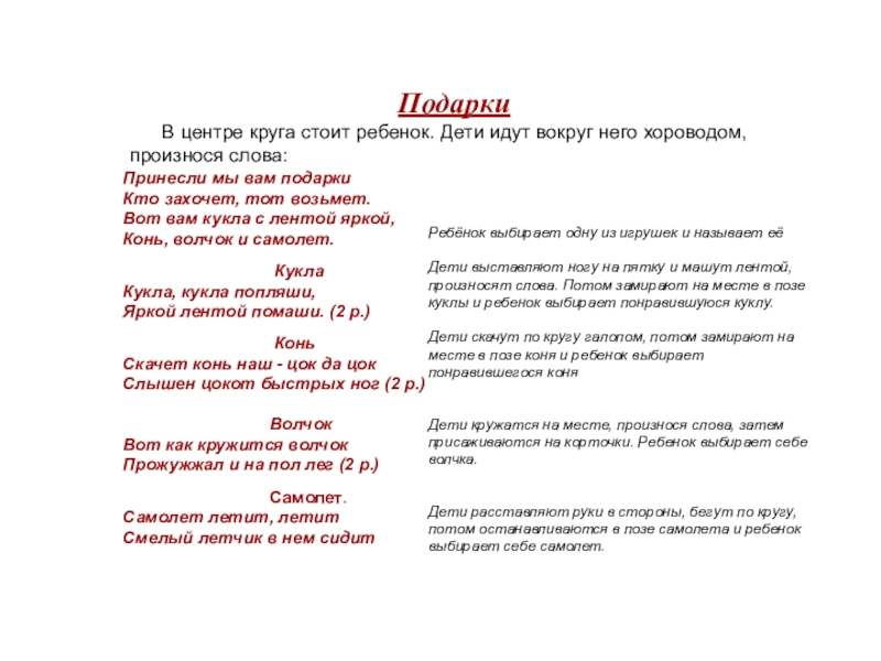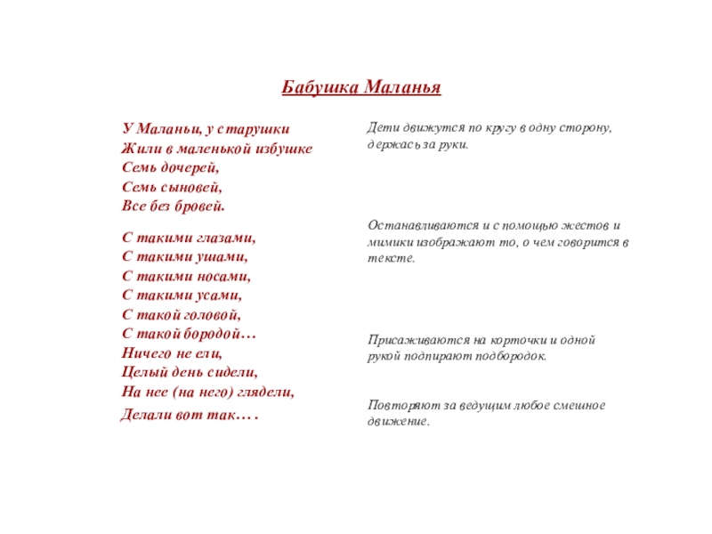 Дети повторяют то же, начинается круговой танец. Игру проводят под любую народную мелодию.