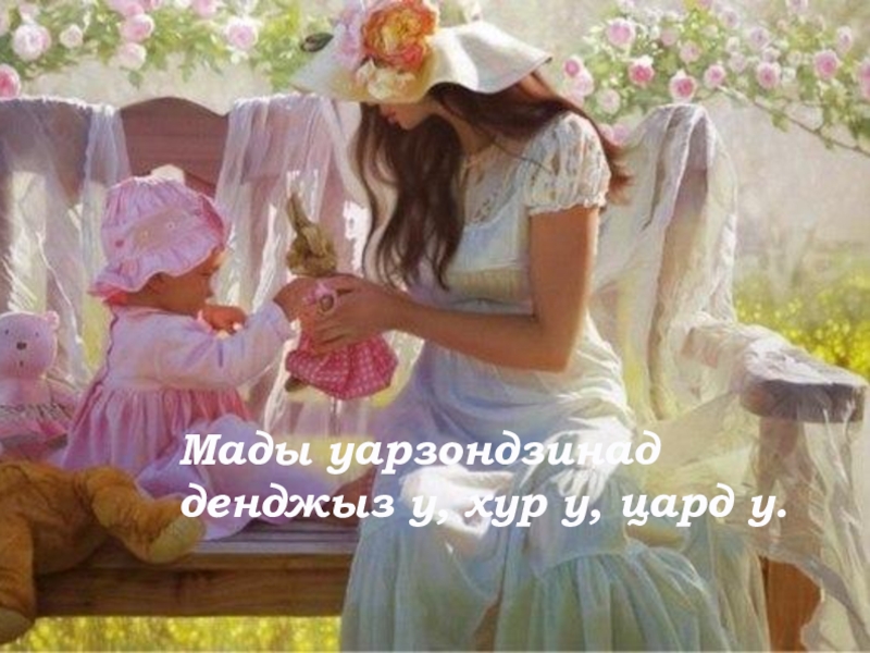 Слайд 37Мады уарзондзинад денджыз у, хур у, цард у.