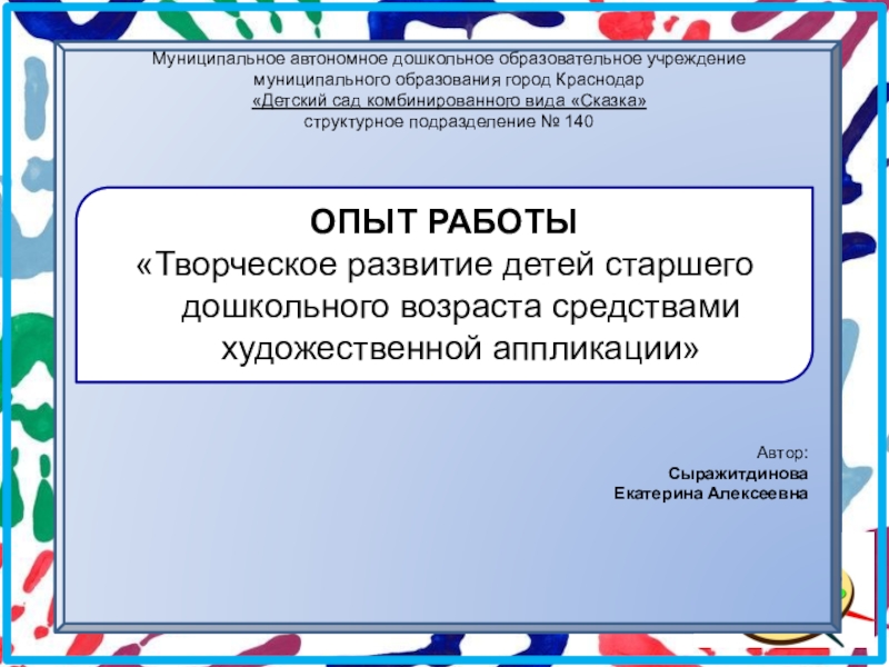 «Творческое развитие детей старшего дошкольного возраста средствами художественной аппликации»