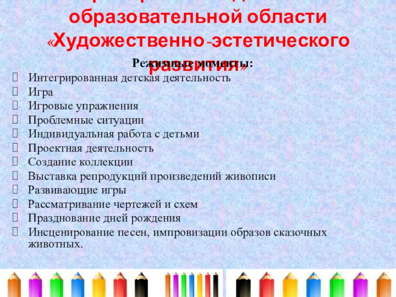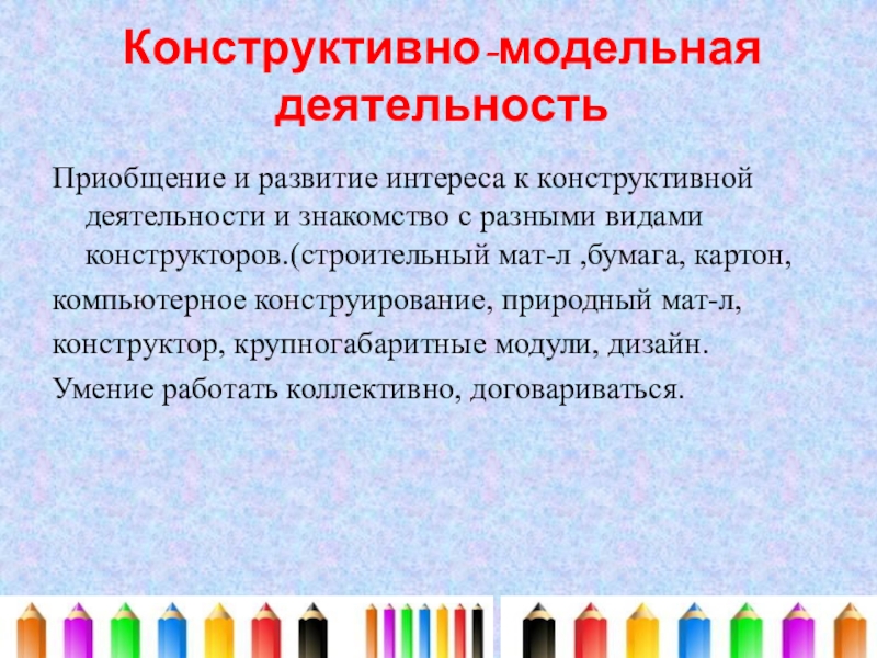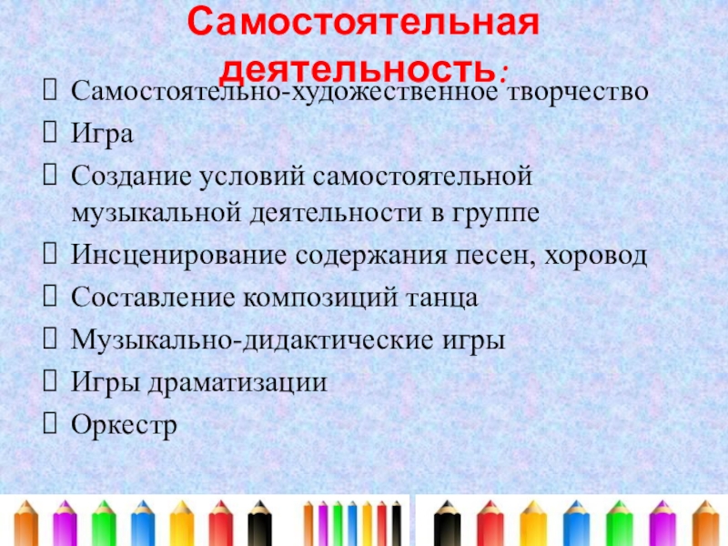6. Реализация самостоятельной творческой деятельности детей (изобразительный, конструктивно - модельной, музыкальной)