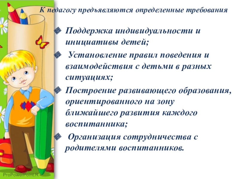 Слайд 8К педагогу предъявляются определенные требования