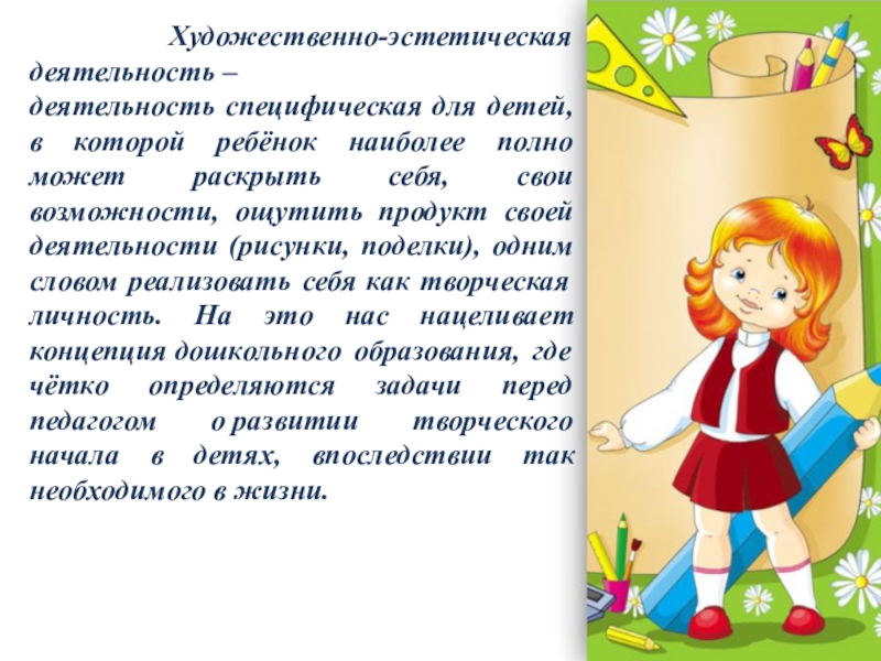 Слайд 10 Художественно-эстетическая деятельность –