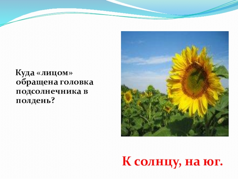 Слайд 10 Куда «лицом» обращена головка подсолнечника в полдень?