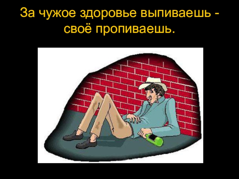 Слайд 10За чужое здоровье выпиваешь - своё пропиваешь.