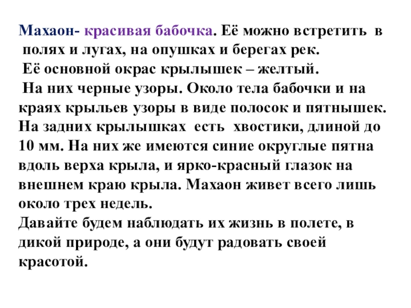 Слайд 10Махаон- красивая бабочка. Её можно встретить в