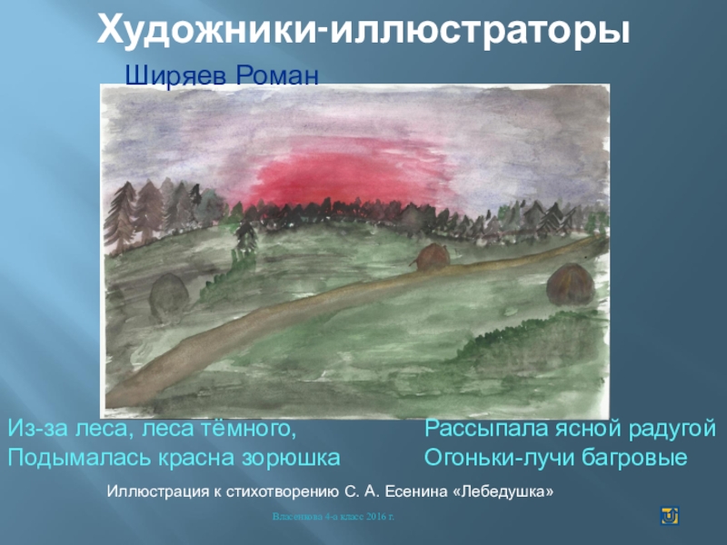 Иллюстрация к стихотворению С. А. Есенина «Лебедушка»
