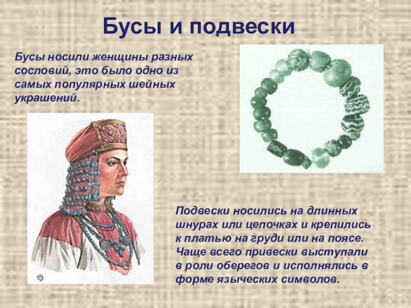 Подвески носились на длинных шнурах или цепочках и крепились к платью на груди или на поясе. Чаще всего привески выступали в роли оберегов и исполнялись в форме языческих символов.