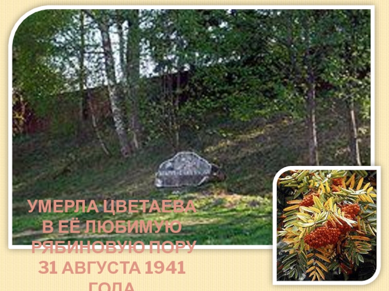 УМЕРЛА ЦВЕТАЕВА В ЕЁ ЛЮБИМУЮ РЯБИНОВУЮ ПОРУ31 АВГУСТА 1941 ГОДА