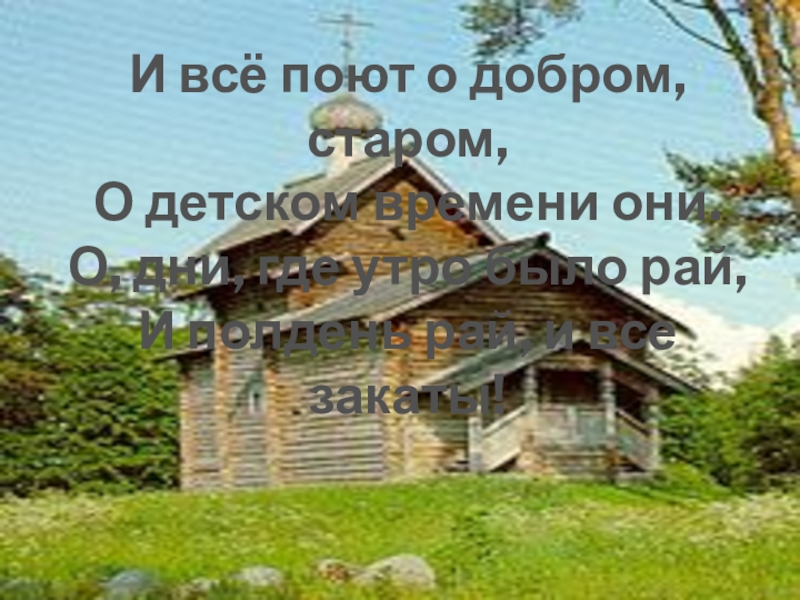 И всё поют о добром, старом,О детском времени они.О, дни, где утро было рай,И полдень рай, и