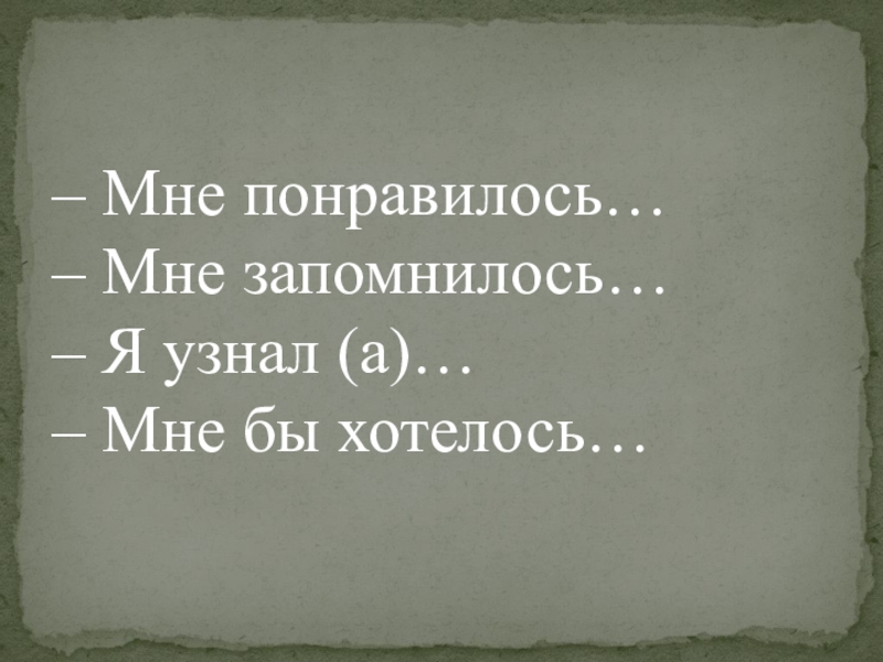 – Мне понравилось… – Мне запомнилось… – Я узнал (а)… – Мне бы хотелось…