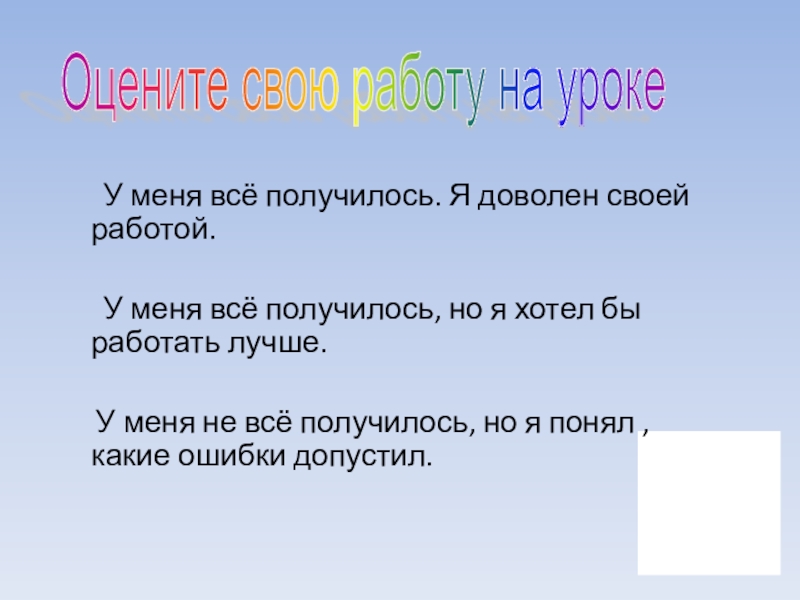 Оцените свою работу на уроке