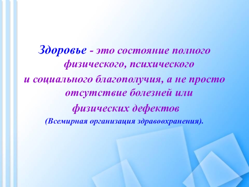 Здоровье - это состояние полного физического, психического