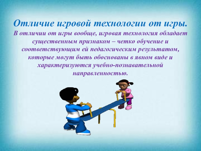 Слайд 19Отличие игровой технологии от игры.