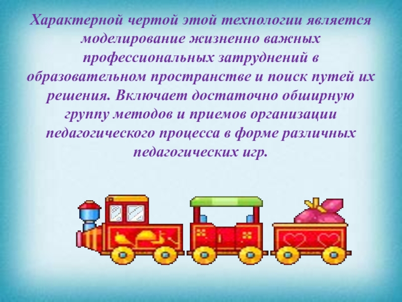 Слайд 18Характерной чертой этой технологии является моделирование жизненно важных профессиональных затруднений в
