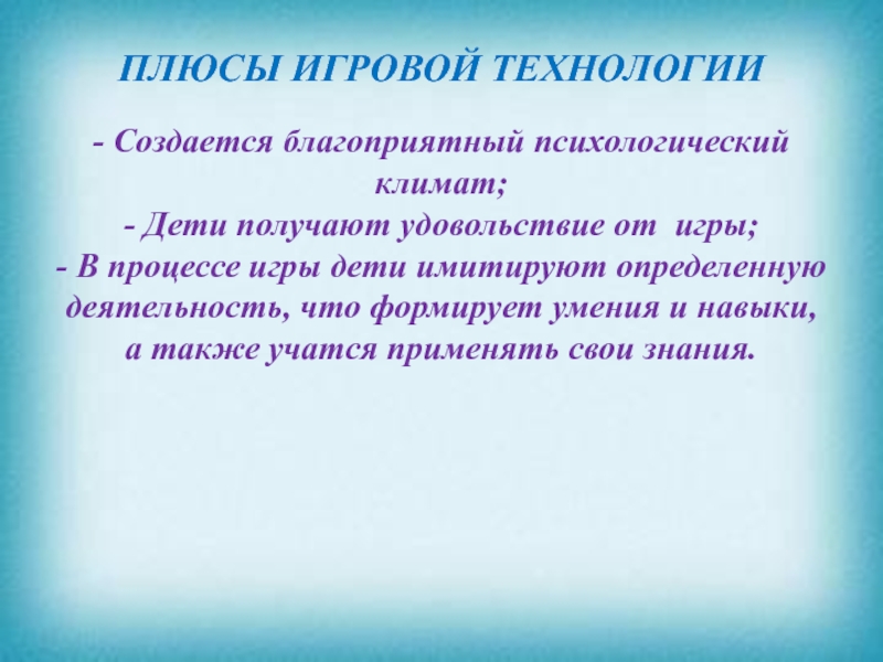 Слайд 25ПЛЮСЫ ИГРОВОЙ ТЕХНОЛОГИИ