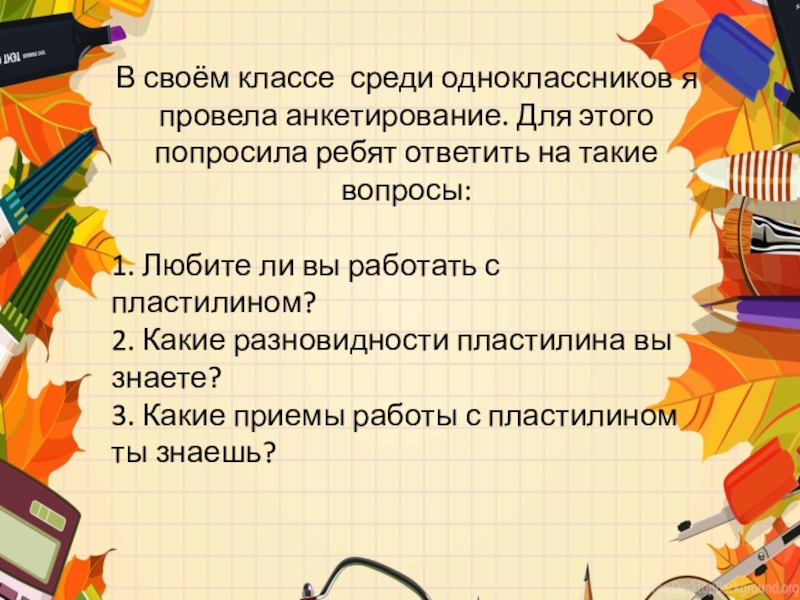 Слайд 18В своём классе среди одноклассников я провела анкетирование. Для этого попросила