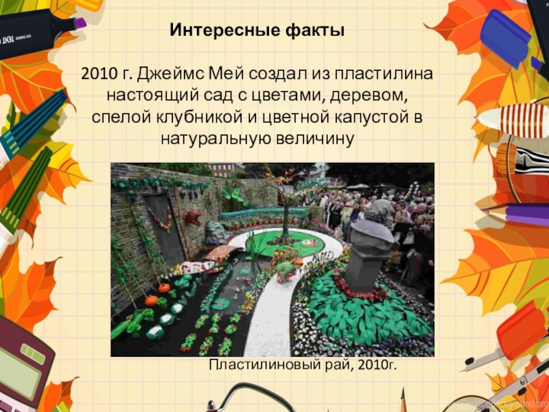 2010 г. Джеймс Мей создал из пластилина настоящий сад с