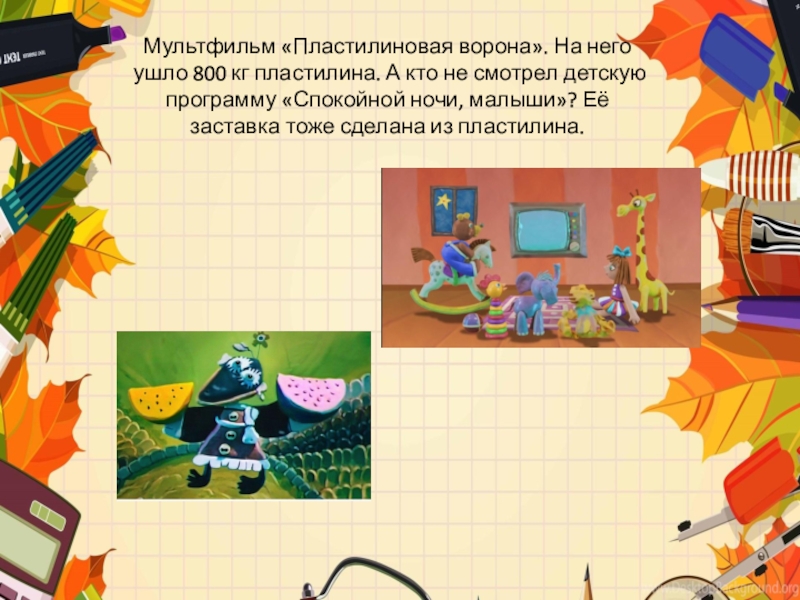 Слайд 10Мультфильм «Пластилиновая ворона». На него ушло 800 кг пластилина. А кто