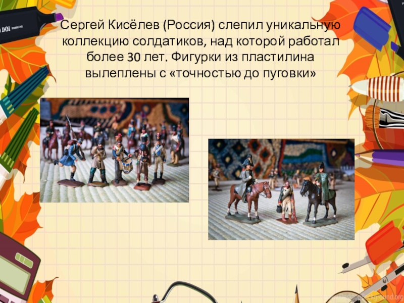 Слайд 9Сергей Кисёлев (Россия) слепил уникальную коллекцию солдатиков, над которой работал более
