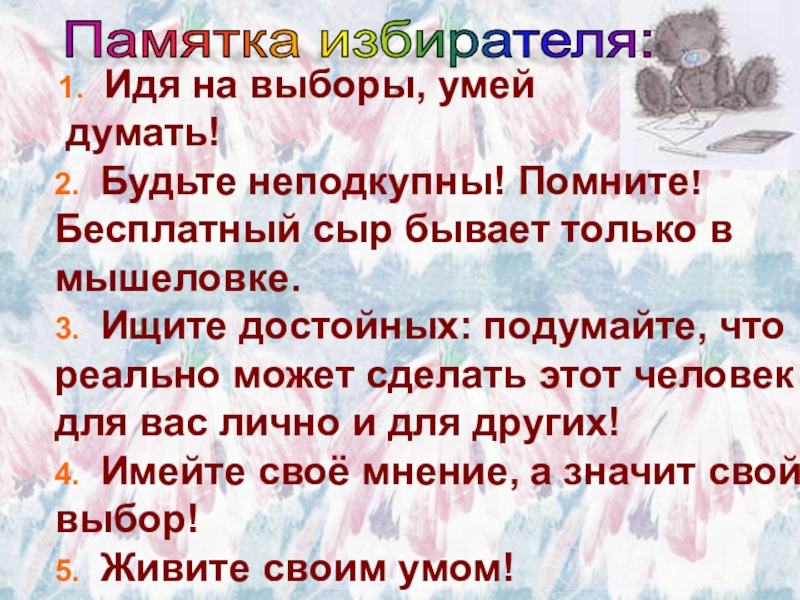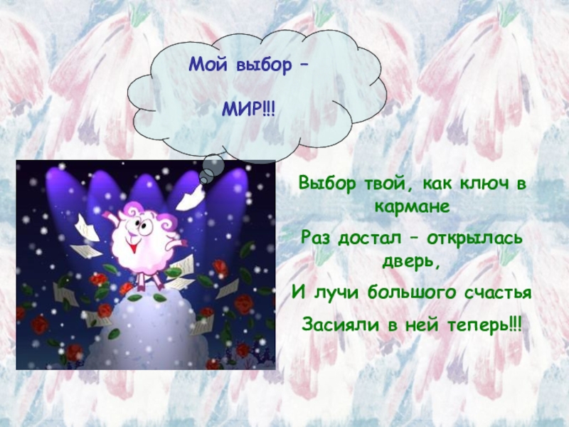 Это сайт презентаций, где можно хранить и обмениваться своими презентациями, докладами, проектами, шаблонами в формате PowerPoint с другими пользователями. Мы помогаем школьникам, студентам, учителям, преподавателям хранить и обмениваться учебными материалами.