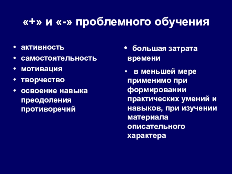 в меньшей мере применимо при формировании практических умений и навыков, при изучении материала описательного характера