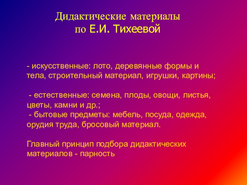 Организация дидактических игр по Е.И.Тихеевой