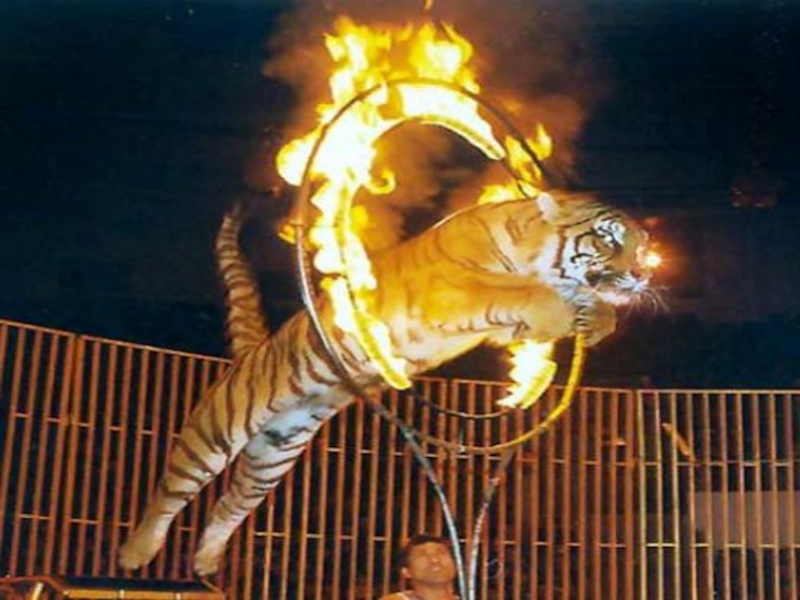 В цирке выступают дрессированные львы, тигры, медведи, собачки