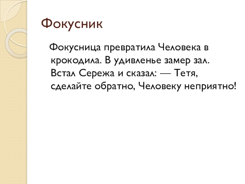 Фокусница превратила Человека в крокодила. В удивленье замер зал.