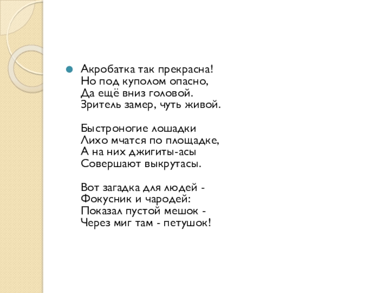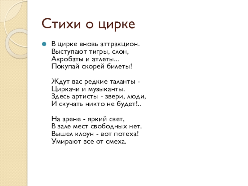 Слайд 23Стихи о цирке
