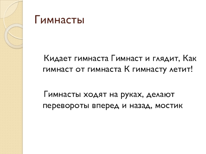 Кидает гимнаста Гимнаст и глядит, Как гимнаст от