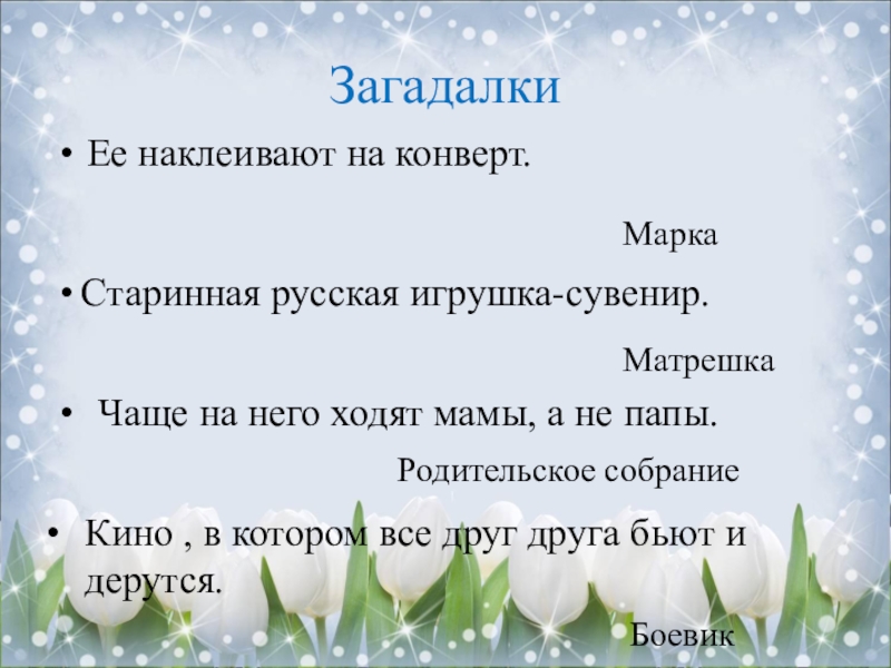 Это сайт презентаций, где можно хранить и обмениваться своими презентациями, докладами, проектами, шаблонами в формате PowerPoint с другими пользователями. Мы помогаем школьникам, студентам, учителям, преподавателям хранить и обмениваться учебными материалами.