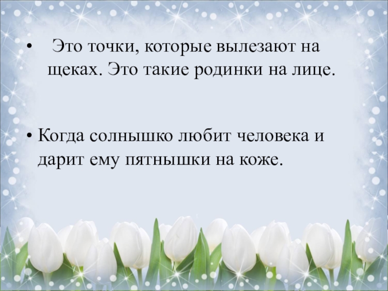 Когда солнышко любит человека и дарит ему пятнышки на коже.