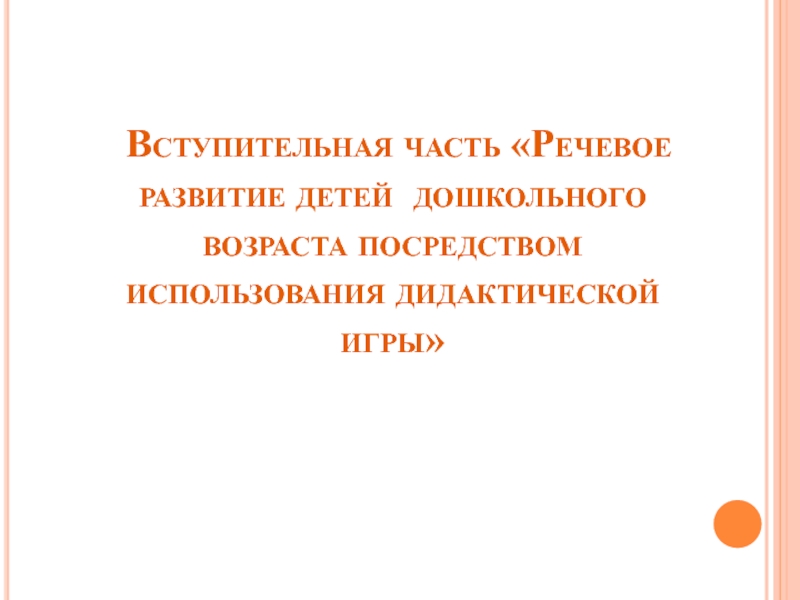 Вступительная часть «Речевое развитие детей дошкольного возраста посредством использования